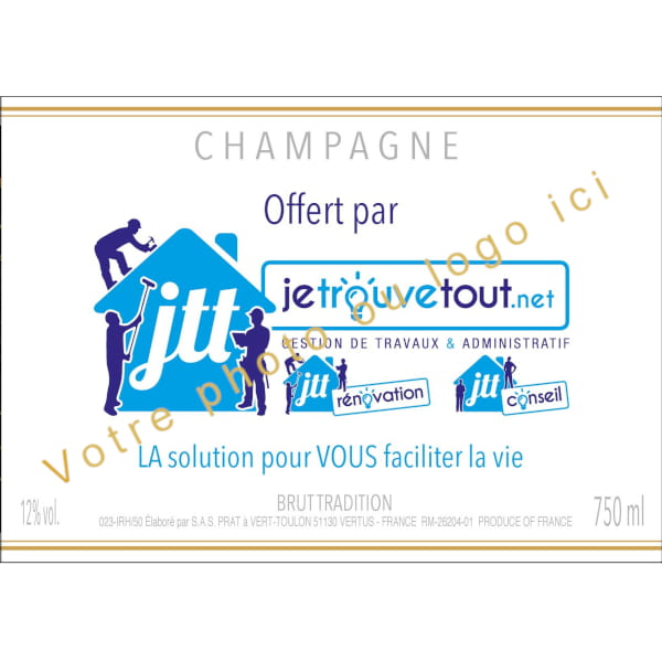 - Les bouteilles personnalisées sont destinées à une consommation personnelle, des événements d'entreprise ou des cadeaux clients . Elles ne peuvent pas être revendues. Pour des entreprises, la mention "Sélectionné spécialement par" ou "offert par" sera toujours présente entre le mot Champagne et le logo.